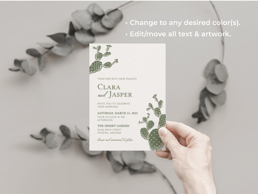 BLOOMING CACTUS | Wedding Invitation Suite Template, Modern, Editable, Printable, DIY Invitation