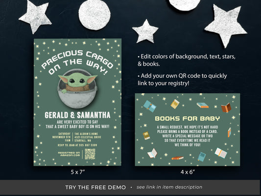 BABY GROGU | Baby Shower Invitation Set, Yoda, Editable, Printable, DIY Invitation