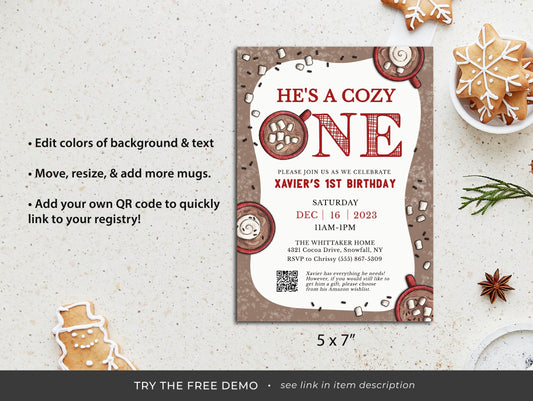 COZY ONE | Baby Shower Invitation Set, Hot Cocoa Chocolate, Editable, Printable, DIY Invitation
