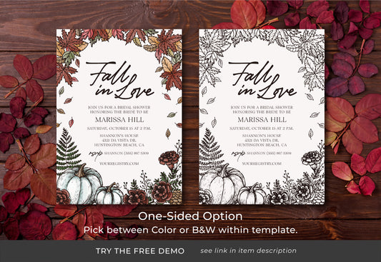 FALL IN LOVE | Bridal Shower Invitation Template, Autumn, Editable, Printable, DIY Invitation