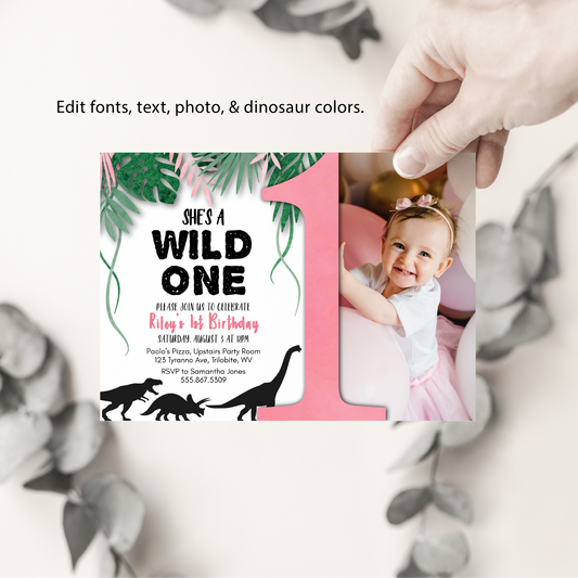 WILD ONE | 1st Birthday Invitation Template, Dinosaur Children Party, Editable, Printable, DIY Invitation