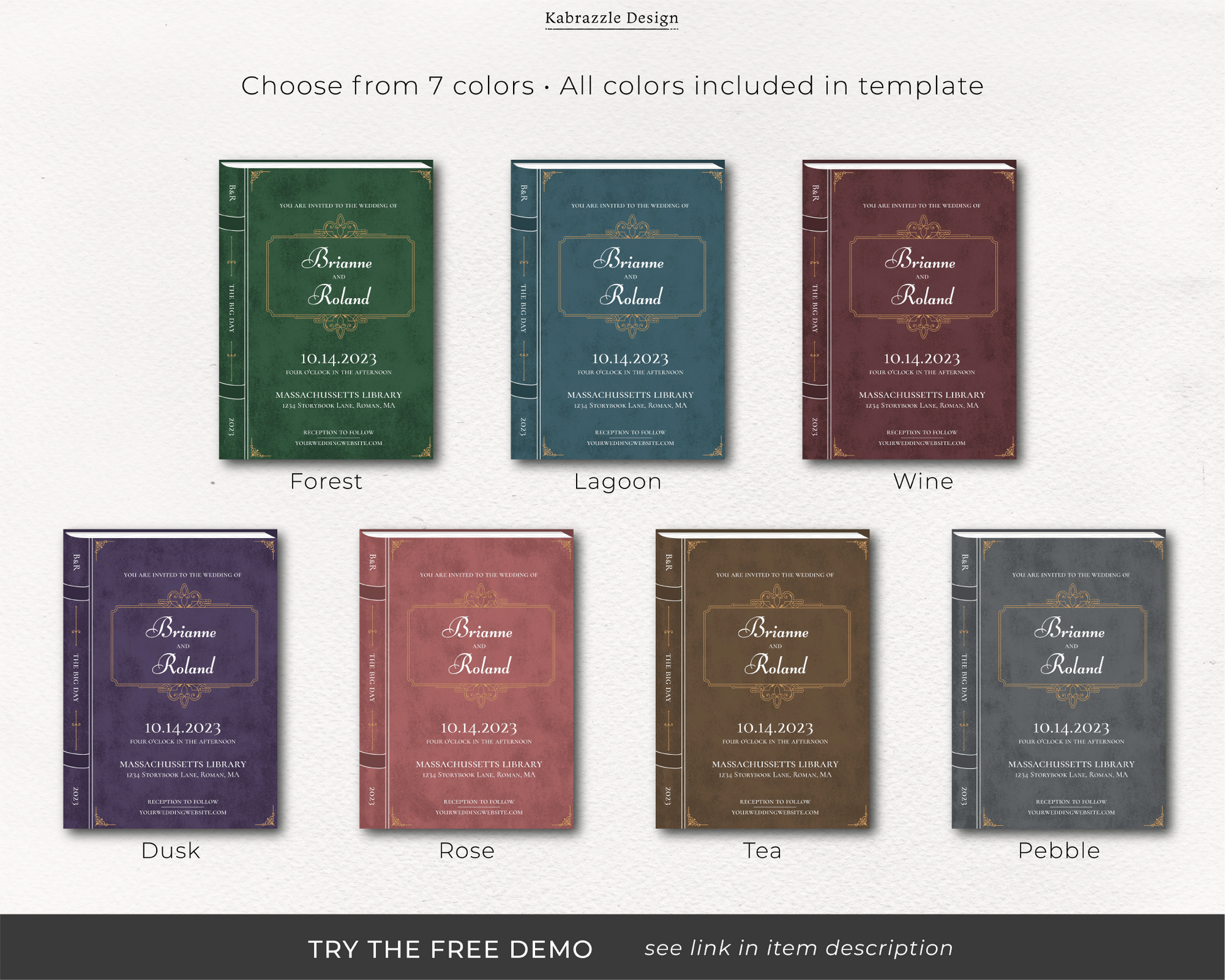 This Wedding Invitation template is an editable template perfect for a book-themed wedding or event. Personalize your template in Corjl, an easy to use, free online template editing platform.